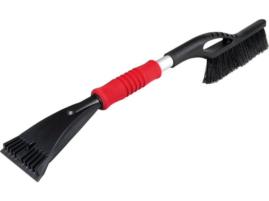 Kombinace smetáčku a škrabky s molitanovou rukojetí pro snadnější držení a ochranu před chladem.